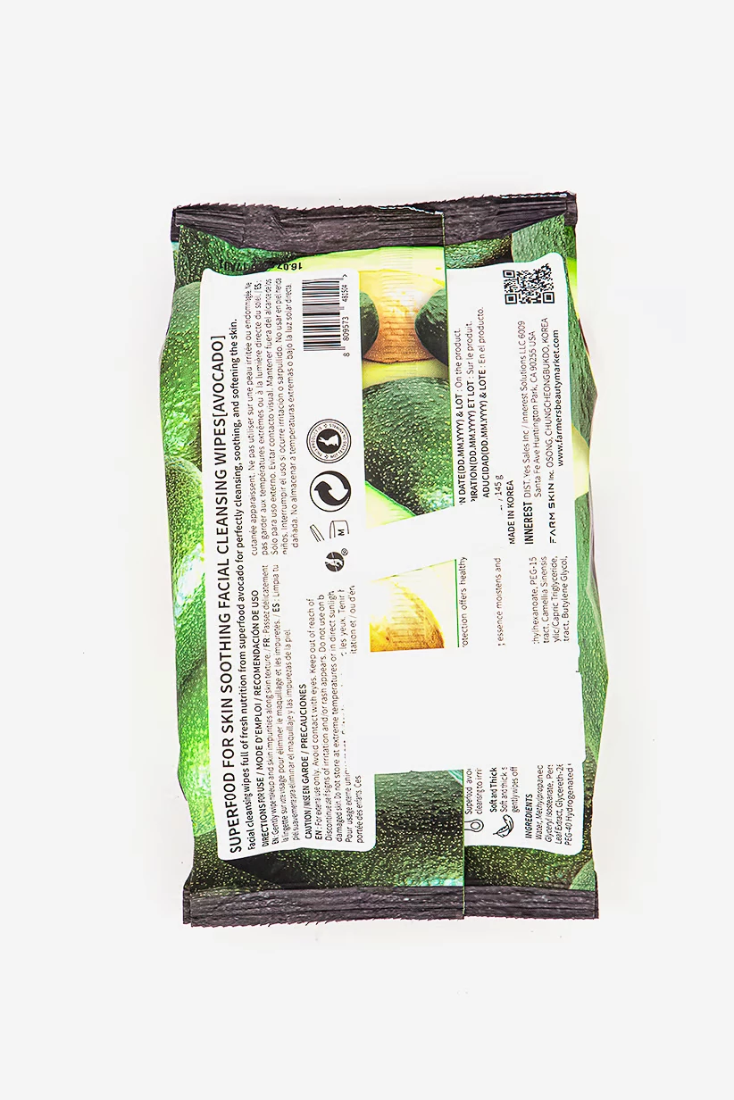 Experience the soothing power of Farmskin Superfood For Skin Avocado Facial Wipes. These cleansing wipes are perfect for leaving your skin feeling soft, fresh, and clear, infused with the goodness of avocado for a rejuvenating experience.