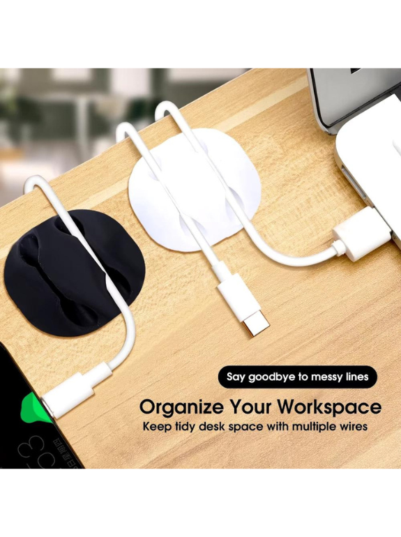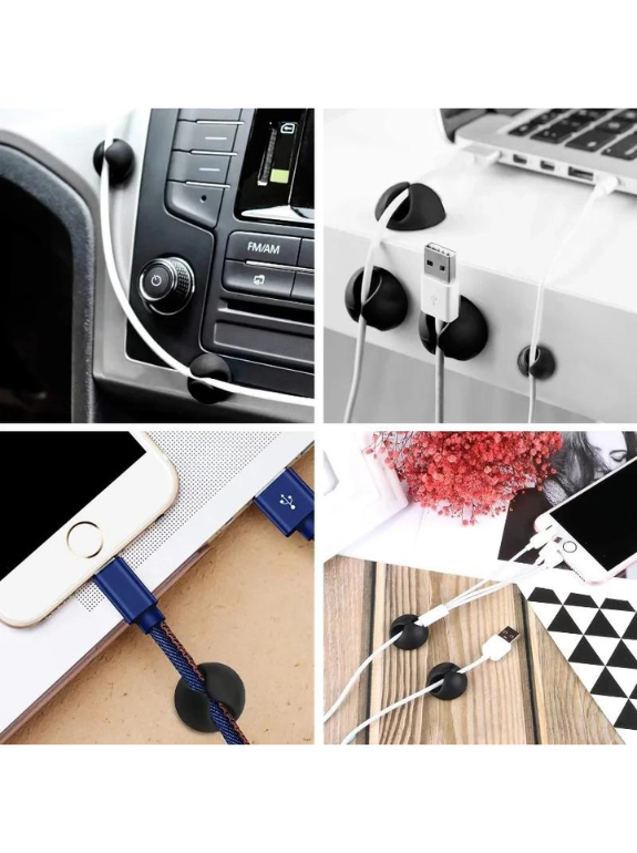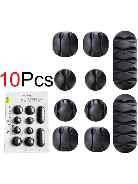 Organize cables with this 10pcs cable organizer set. Strong adhesive silicone clips in multiple sizes for desktops, offices, and kitchens. Manage USB, HDMI, headphone cords, and more.