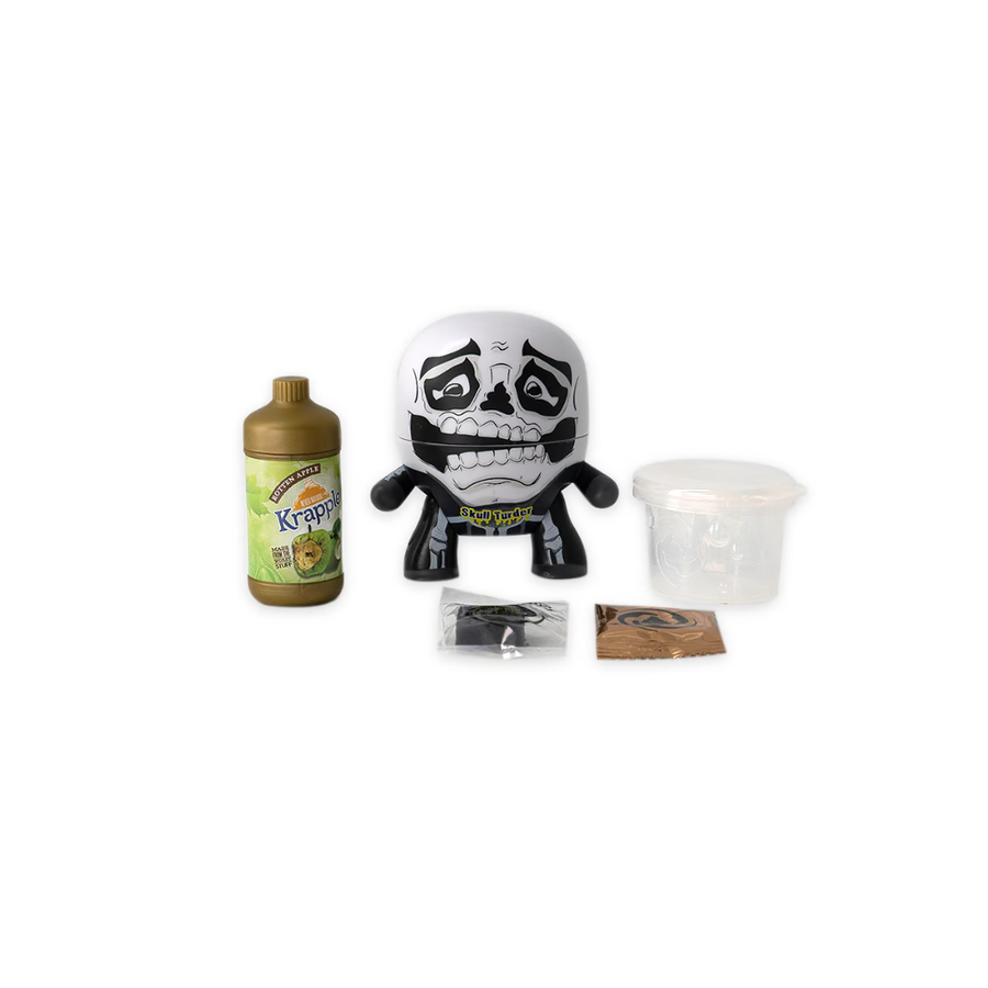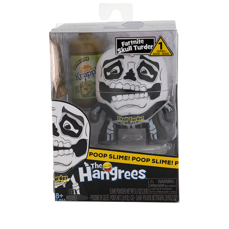 Dive into messy fun with The Hangrees Fartnite Skull Turder in White and Black! This hilarious set features a dump parody figure, a krapple container, mystery slime powder, slime texture, and a special toilet for slime storage. Perfect for young pranksters and fans of playful humor, this toy set guarantees hours of laughter, creativity, and imaginative fun!