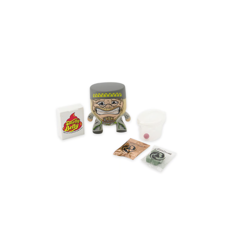 Complete Slime Set: Comes with a Professor Dumpsalot figure, mystery slime powder, texture, and storage toilet.