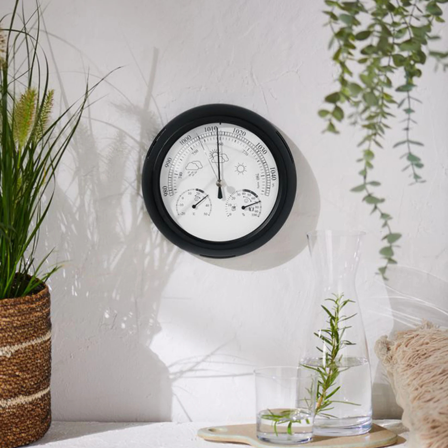 Stylish & Practical Design – Features a large barometer display with thermometer and hygrometer dials for easy reading.