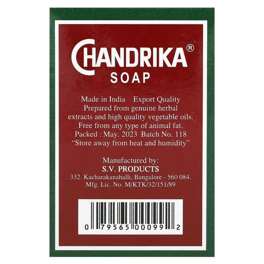 Chandrika Ayurvedic Soap brings you a natural and effective skincare solution rooted in the ancient wisdom of Ayurveda. Crafted with a blend of pure vegetable oils and time-tested Ayurvedic herbal extracts, this soap gently cleanses and nourishes your skin without harmful chemicals. Its soothing and revitalizing properties make it the ideal choice for anyone seeking a natural and holistic way to care for their skin. Whether used daily or as part of your wellness ritual, Chandrika provides a refreshing experience that promotes healthy, radiant skin.