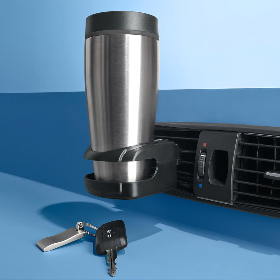 Stay refreshed while on the road with the Tchibo Car Cupholder in sleek black. This smart, lightweight drink holder is designed for easy attachment to your vehicle’s air vent louvers—whether they’re vertical or horizontal. With its secure clamp and adjustable spacer, it provides a firm grip and reliable support for your cup, bottle, or can. Ideal for nearly all car models, this accessory ensures your drink is always within reach and safely stored.