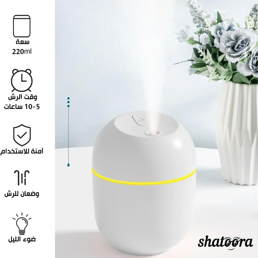Bring freshness, relaxation, and pure comfort into your space with the Shatoora Premium Compact USB-Powered Humidifier and Aroma Diffuser. Designed for a modern lifestyle, this 2-in-1 device combines elegant design with powerful performance. It quietly humidifies your air while diffusing your favorite essential oils, helping you breathe easier and sleep better. With its USB-powered convenience, it’s perfect for your home, office, or bedside. The built-in night light adds a soothing glow, while the auto shut-off ensures safe, worry-free operation. Sleek, compact, and easy to carry — it’s the perfect everyday essential and a thoughtful gift for loved ones.