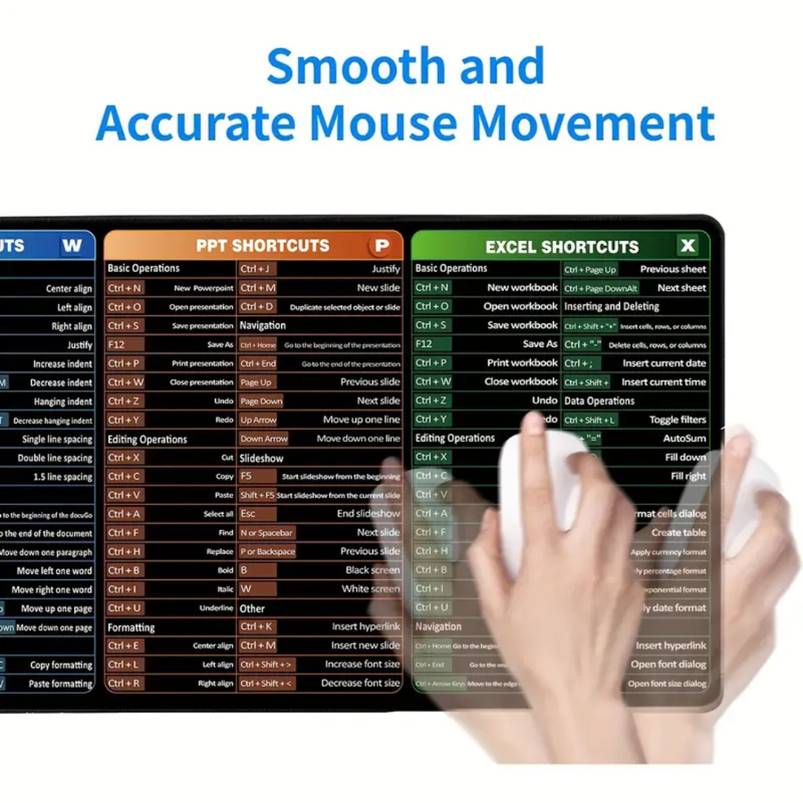 Maximize your efficiency and upgrade your workspace with the Shatoora Premium Extra-Large Extended Mouse Pad. Designed with HD-printed shortcuts for Microsoft Word, PowerPoint, and Excel, this 80 x 30 cm desk mat helps you work smarter and faster by keeping essential commands at your fingertips. Crafted from durable polyester and rubber, it provides a smooth washable surface for easy cleaning and a non-slip base for stability during long hours of use. Perfect for home, office, and gaming setups, this mouse pad combines productivity, comfort, and style in one practical accessory.