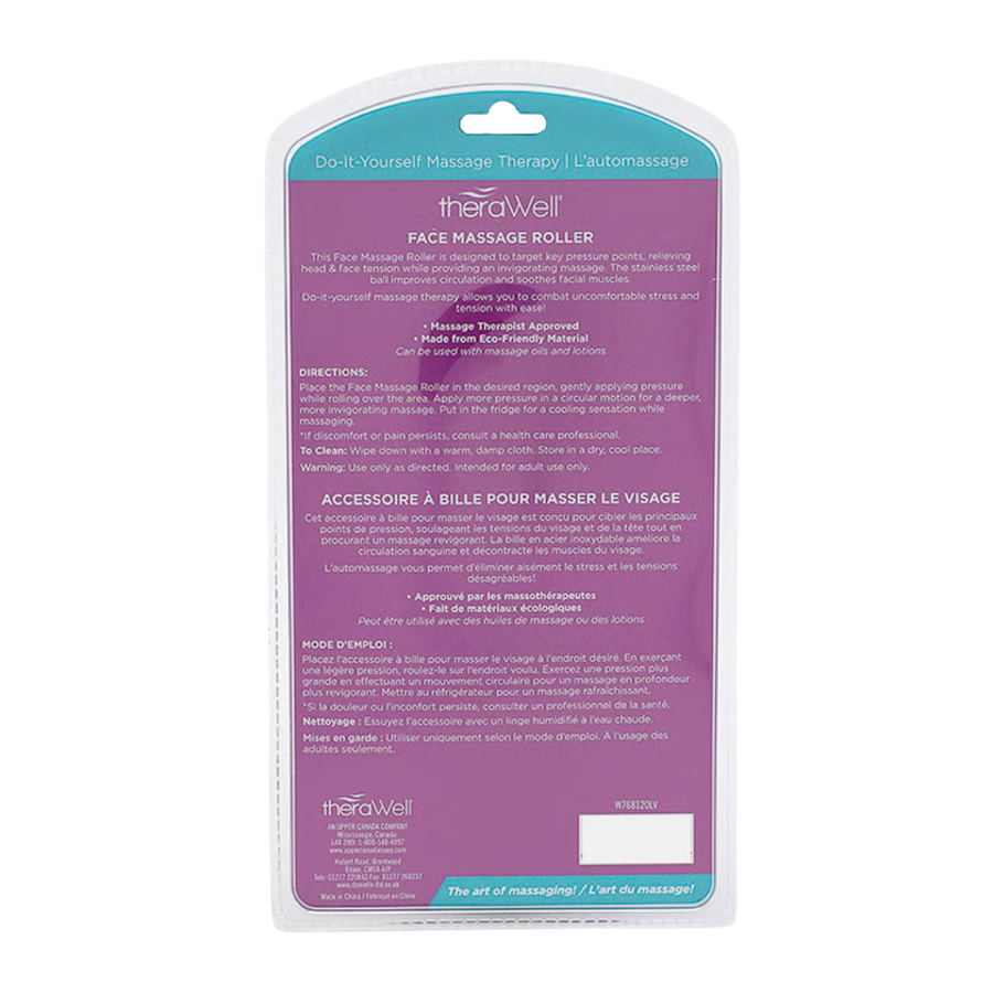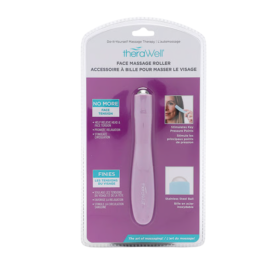 Elevate your skincare routine with the Therawell Face Massage Roller in lavender. Designed to stimulate circulation, promote deep relaxation, and help relieve facial and head tension, this roller provides a spa-like experience from the comfort of home. With its ergonomic design and smooth rolling action, it enhances skincare absorption and supports a refreshed, rejuvenated appearance.