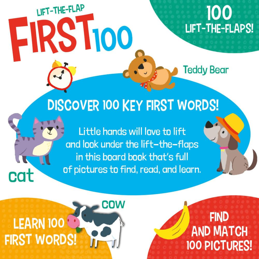 Discover First 100 Words, Lift-the-Flaps, a colorful board book with 100 interactive flaps to build toddler vocabulary.