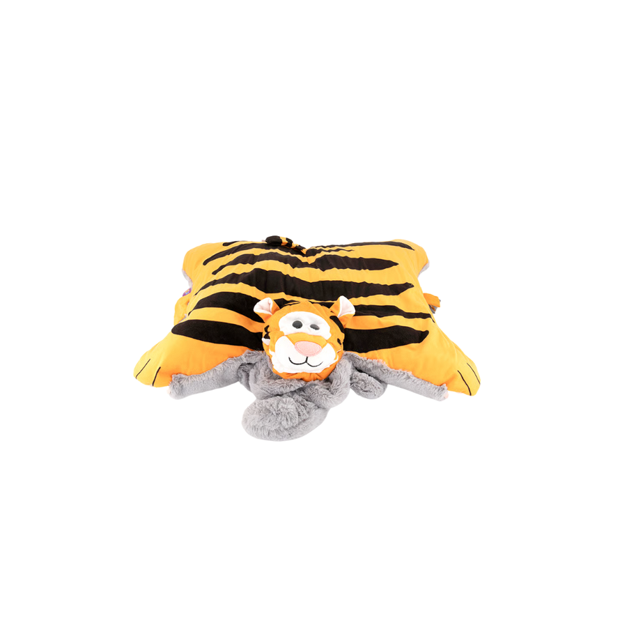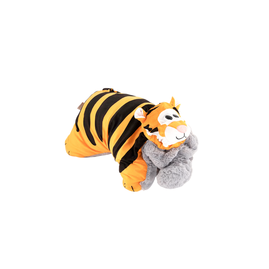 Unleash double the fun with the Jay at Play Flip and Play Friends Tiger Elephant Pillow Toy, a charming 2-in-1 plush companion! Designed in soft grey and orange tones, this cuddly toy flips inside out to transform from a friendly elephant into a playful tiger—perfect for imaginative play, cozy naps, or travel comfort.