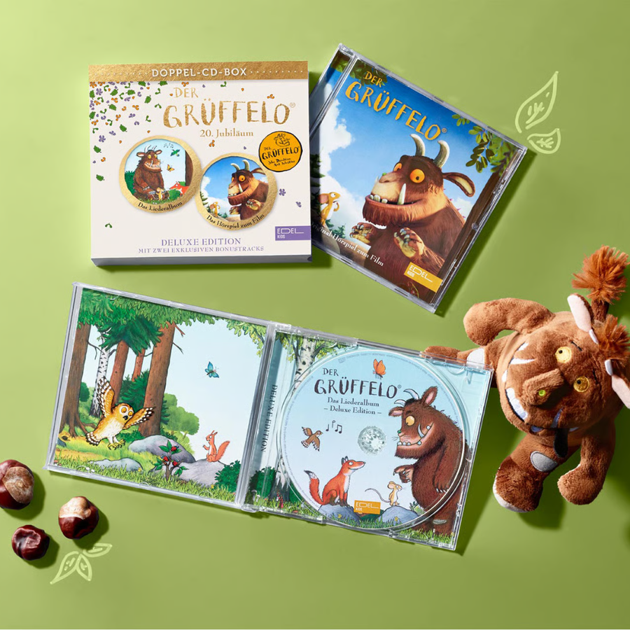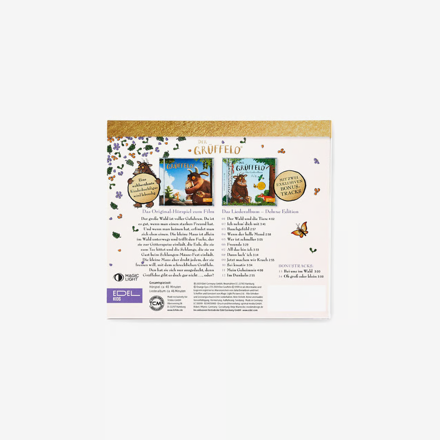 The Tchibo CD Box Gruffelo brings the beloved children's story "The Gruffalo" to life in a captivating audio format. Based on the world-famous children's book by Julia Donaldson and illustrated by Axel Scheffler, this 30-minute radio play follows the clever mouse as it outsmarts its predators with tales of the fearsome Gruffalo. With a star-studded German cast including Christian Ulmen as the mouse and Wolfgang Hess as the Gruffalo, this entertaining story is a treat for children and adults alike. The CD box also includes a song album, making it a perfect companion for storytime.