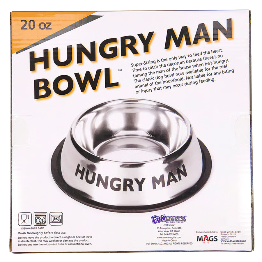 Make mealtime fun with the Mags Hungry Man Stainless Bowl, Silver — a hilarious and practical novelty item designed especially for men who love to eat big! Crafted from durable stainless steel, this large bowl combines functionality with humor, making it perfect for daily use or as a lighthearted gift. Its bold graphic print and shiny silver finish add a playful twist to any kitchen or dining table. Ideal for serving large portions of cereal, soup, snacks, or even as a quirky decorative piece, this “Hungry Man” bowl is sure to bring smiles all around.