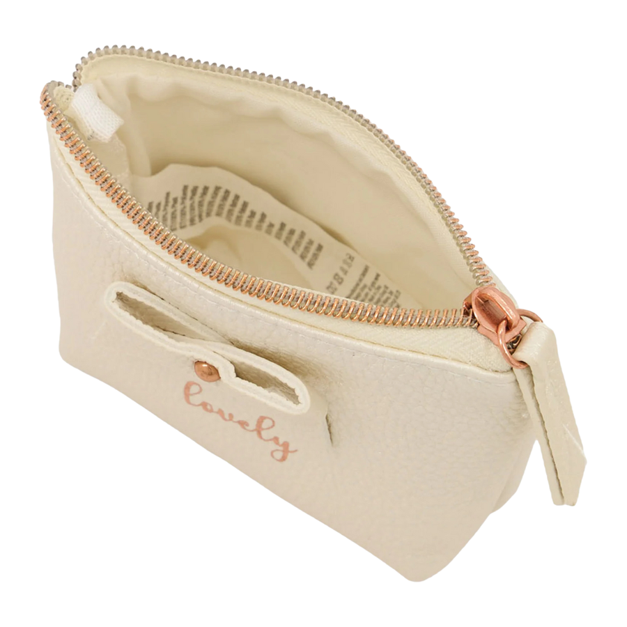 Let your little one express her style with the Posh & Pop Pearlized Pebble Cosmetics Bag in shimmering light silver. Designed especially for girls who love a touch of glam, this bag features a chic pearlized pebble texture with a fun graphic print. Compact and practical, it's perfect for storing cosmetics, hair accessories, or small treasures. Made from durable polyester and finished with a zipper closure, this bag is as functional as it is adorable.