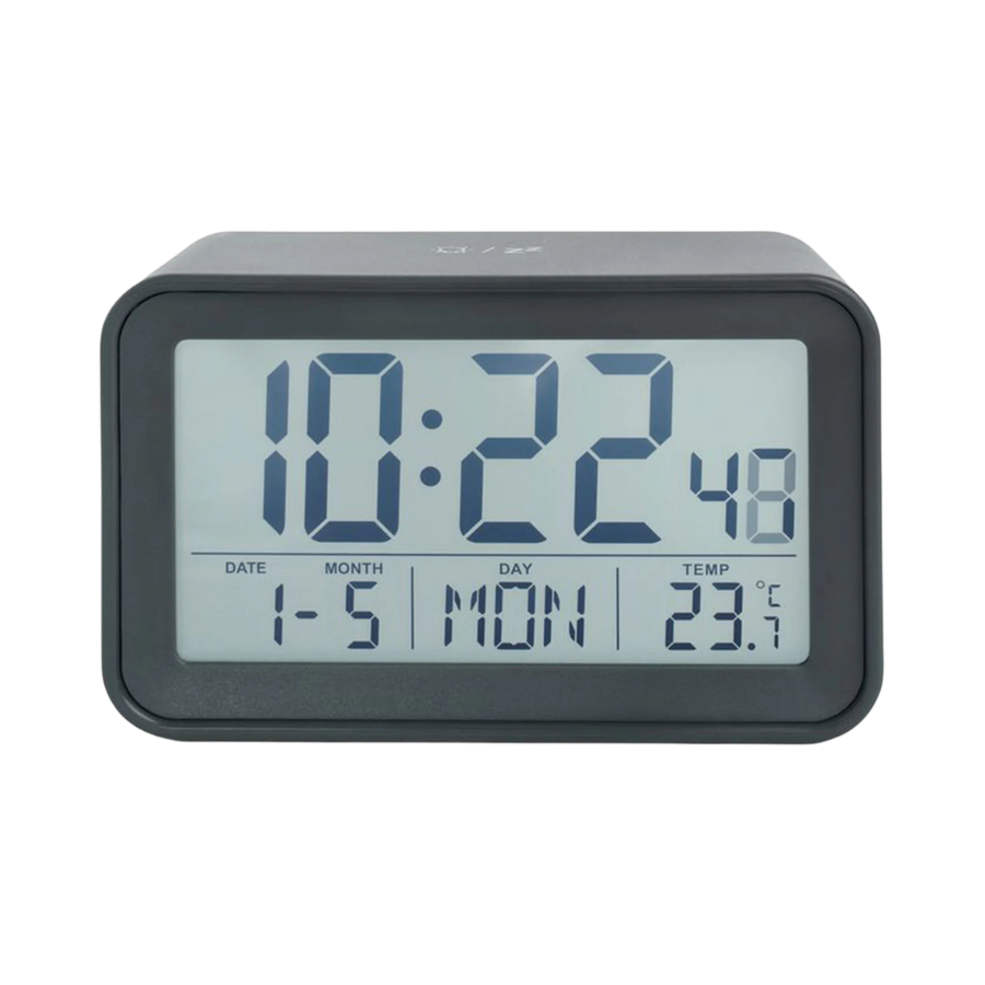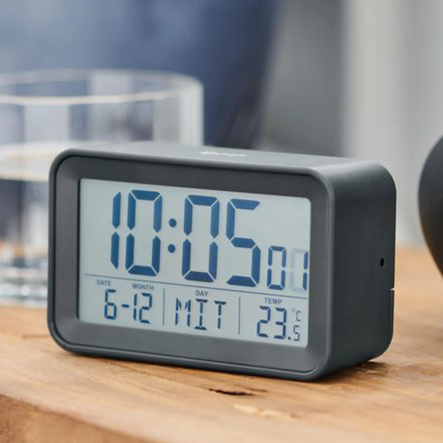 High-Contrast Display: Crisp and clear LCD screen shows time, date, weekday, and indoor temperature.