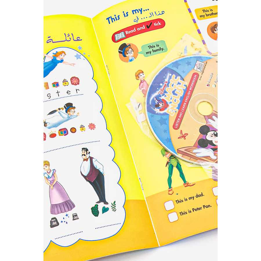 Turn learning into an adventure with the Disney Magic English My Home With CD. Whether at home or in the classroom, this set helps children expand their vocabulary, sharpen their listening skills, and enjoy every step of their language journey. Bright, fun, and educational — order now and let Disney make learning magical!