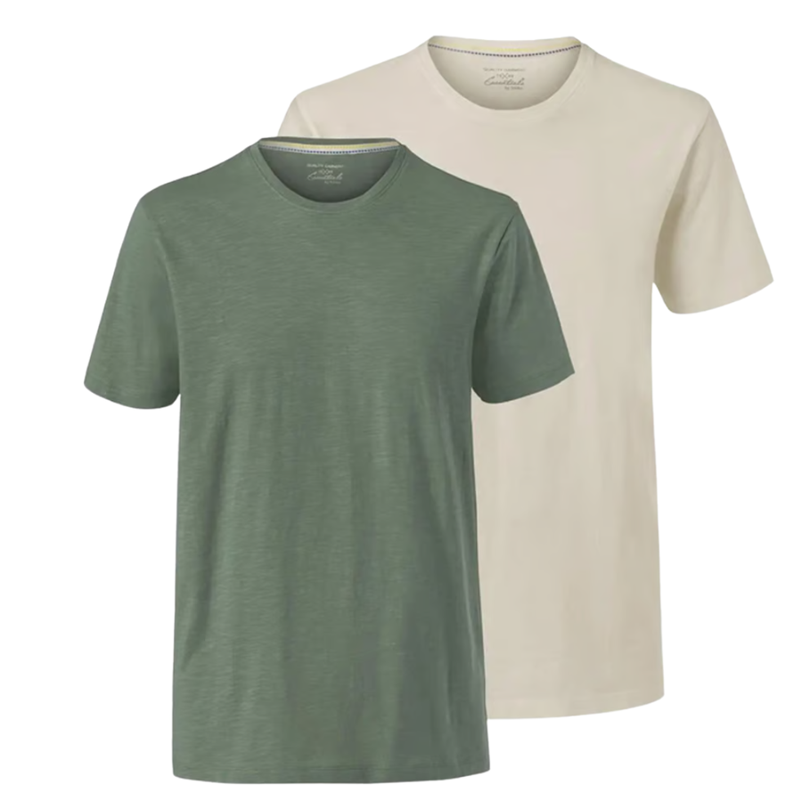 Stay cool, fresh, and effortlessly stylish with this set of two men’s short sleeve T-shirts from Tchibo. Designed with simplicity and comfort in mind, these tees feature a classic round neckline and a regular fit that suits all body types. Made from 100% breathable cotton, they ensure maximum comfort for daily wear. Whether you're at home, running errands, or layering up, these T-shirts in olive and white deliver timeless style and all-day ease.