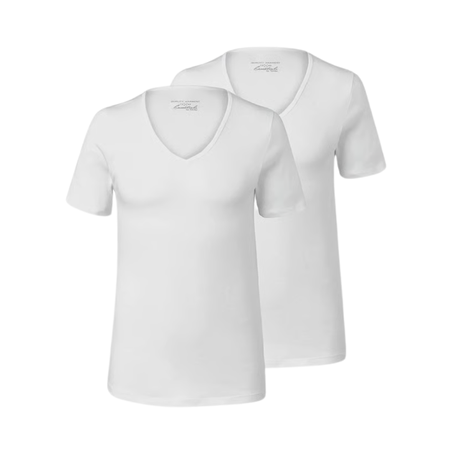 Tchibo men’s 2-pack white V-neck t-shirts, short sleeve, 100% cotton, regular fit, machine washable and solid style – comfortable and casual wear.