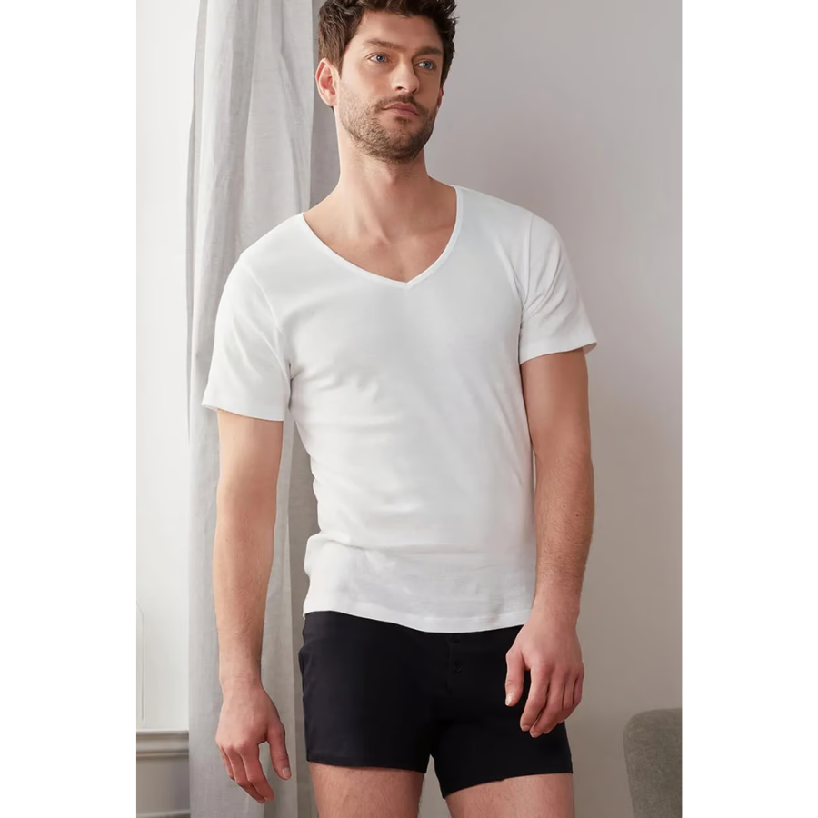 Refresh your everyday basics with the Tchibo 2-piece white V-neck short sleeve T-shirt set. Made from 100% soft and breathable cotton, these tees are crafted for daily comfort and versatility. The clean, plain design, paired with a regular fit and V-neckline, makes them perfect for layering or standalone wear. Whether you're lounging, traveling, or running errands, this set combines functionality with simplicity in the best way.
