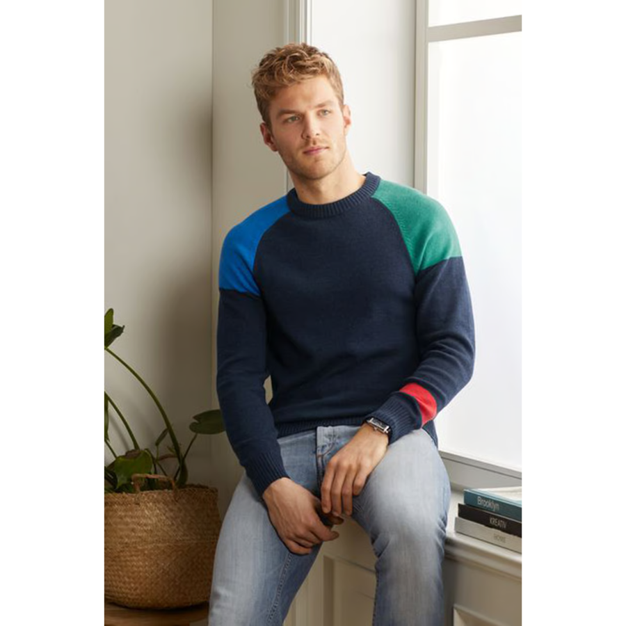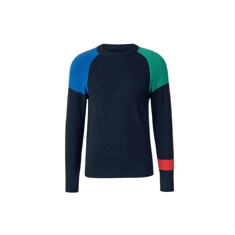 Shop Tchibo Men’s Colorblock Pullover Sweater in Navy Combo – 100% cotton, regular fit, modern design, and comfortable wear. Perfect for casual outfits.