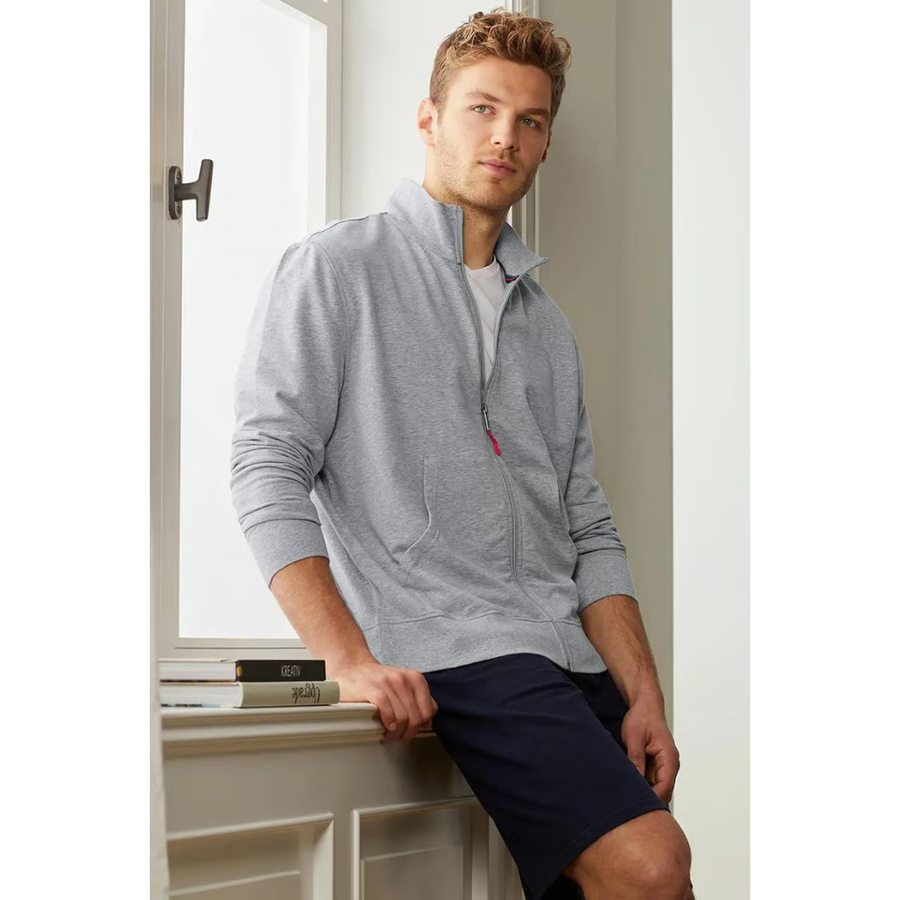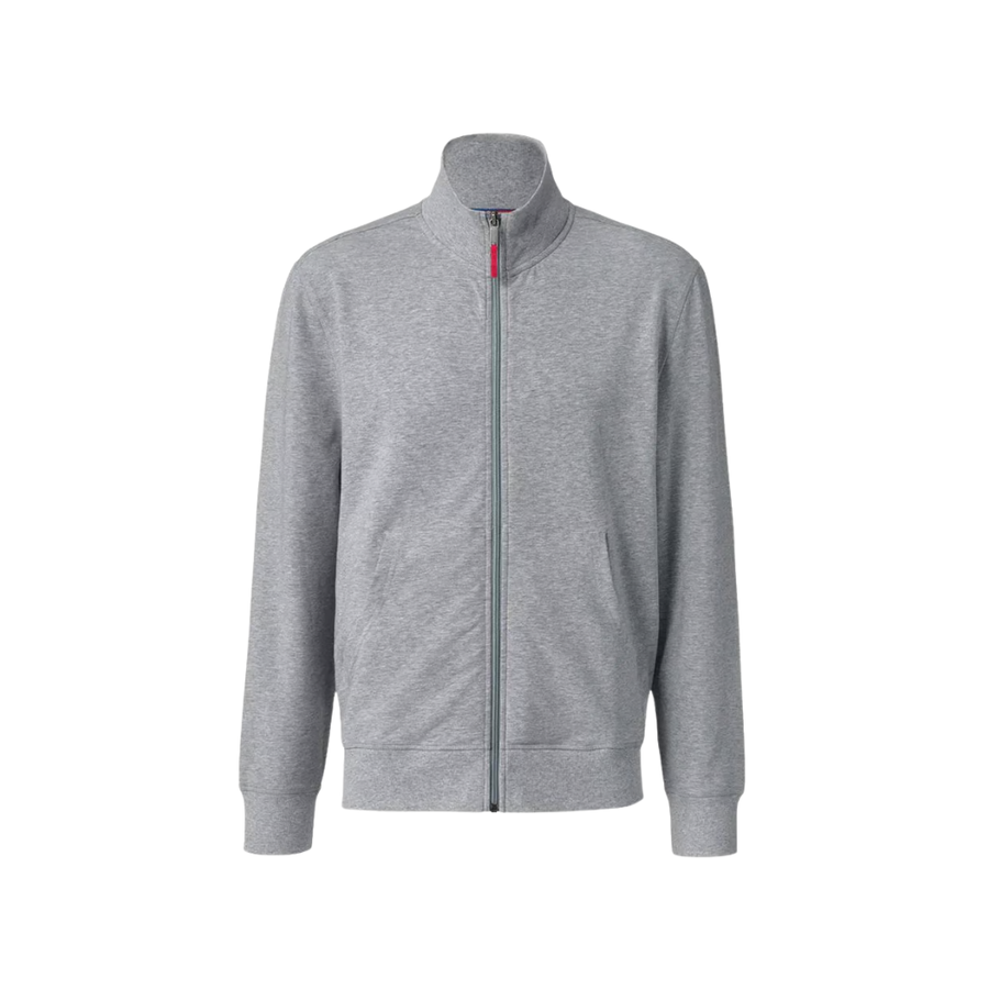 Tchibo Men’s Heather Full Zip Sweatshirt in Light Grey – Midweight zip-up with mid collar, exposed zipper, and regular fit.