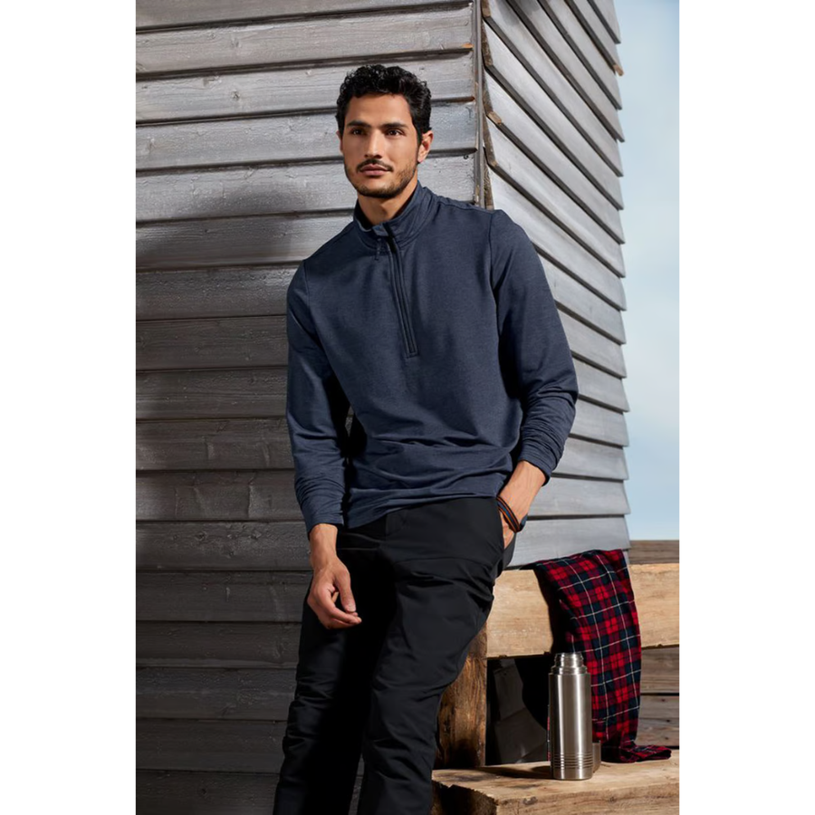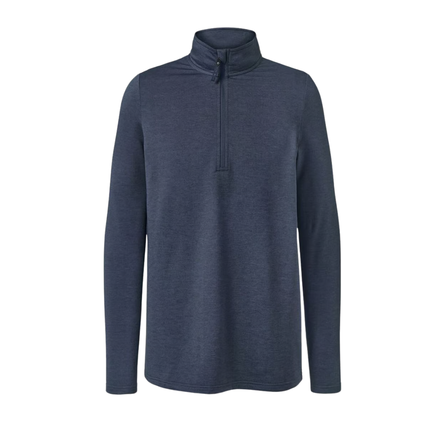 The mock neckline with a half zip closure adds a contemporary touch, making it ideal for layering or wearing on its own. With a clean, solid navy color, it’s a timeless piece you’ll reach for all season long.