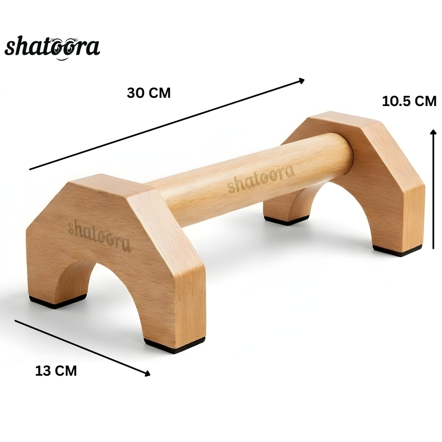 Train smarter with the Shatoora Premium Romanian Beech Wood Push-Up & Handstand Stands—designed for strength, stability, and versatility. Crafted from durable Beech Wood, these ergonomic stands support up to 250 kg, making them ideal for push-ups, L-sits, diamond push-ups, and handstand training. The non-slip rubber grips provide maximum control, while the solid wood construction ensures durability. Whether at home, the gym, or outdoors, this all-in-one tool is perfect for enhancing your body-weight workouts.