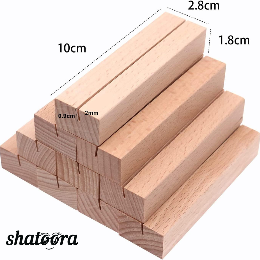 Bring a touch of nature and elegance to your events with the Shatoora, Premium Solid Beech Wood Place Card Holders. Crafted from durable, eco-friendly beech wood, these minimalist card holders feature a slanted notch for displaying cards, photos, or menus with style. Ideal for weddings, restaurants, or home décor, their warm wooden tone and fine craftsmanship make them a perfect blend of practicality and rustic charm.