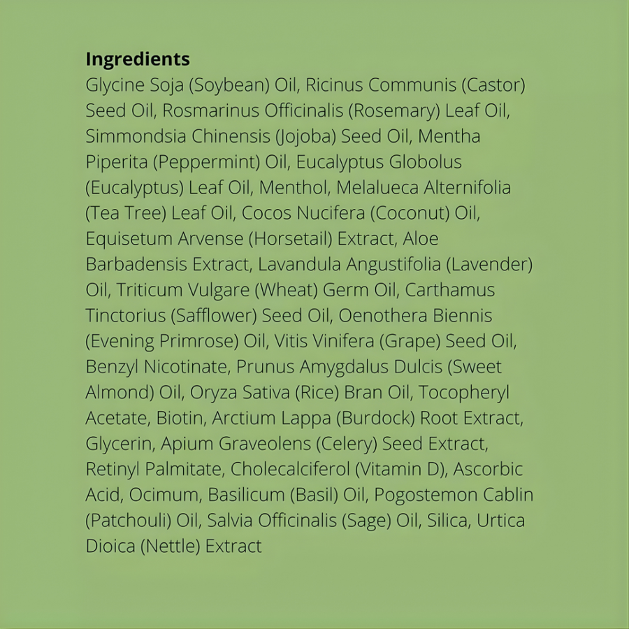 Key Ingredients: Biotin, Rosemary Oil, Mint Oil