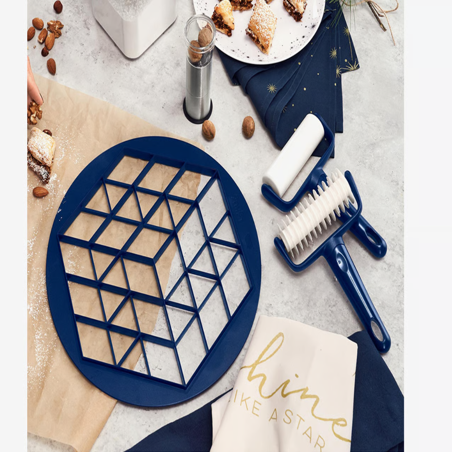 Bring fun and precision to your kitchen with the Tchibo Set of 3 Niblet Baking Set in a charming blue and white finish. This multifunctional set includes a smart roller, dough template, and double-sided cutter—perfect for crafting mini dumplings, tartlets, pizza snacks, or sweet treats. Designed to save time and boost creativity, it allows you to prepare uniform shapes with minimal effort. Whether you're hosting or meal prepping, this set makes kitchen time quicker and more enjoyable.