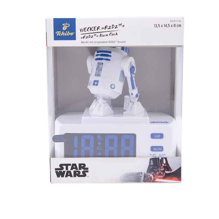 Wake up in style with the Tchibo Star Wars Retro Alarm Clock, designed for fans of the galaxy far, far away. Featuring a digital LC display with a 24-hour clock, this retro-inspired clock combines functionality with Star Wars nostalgia. The blue time display and backlighting provide clear visibility, while the original R2D2 alarm sound ensures you start your day with a smile. Compact and durable, this clock is perfect for Star Wars lovers of all ages.