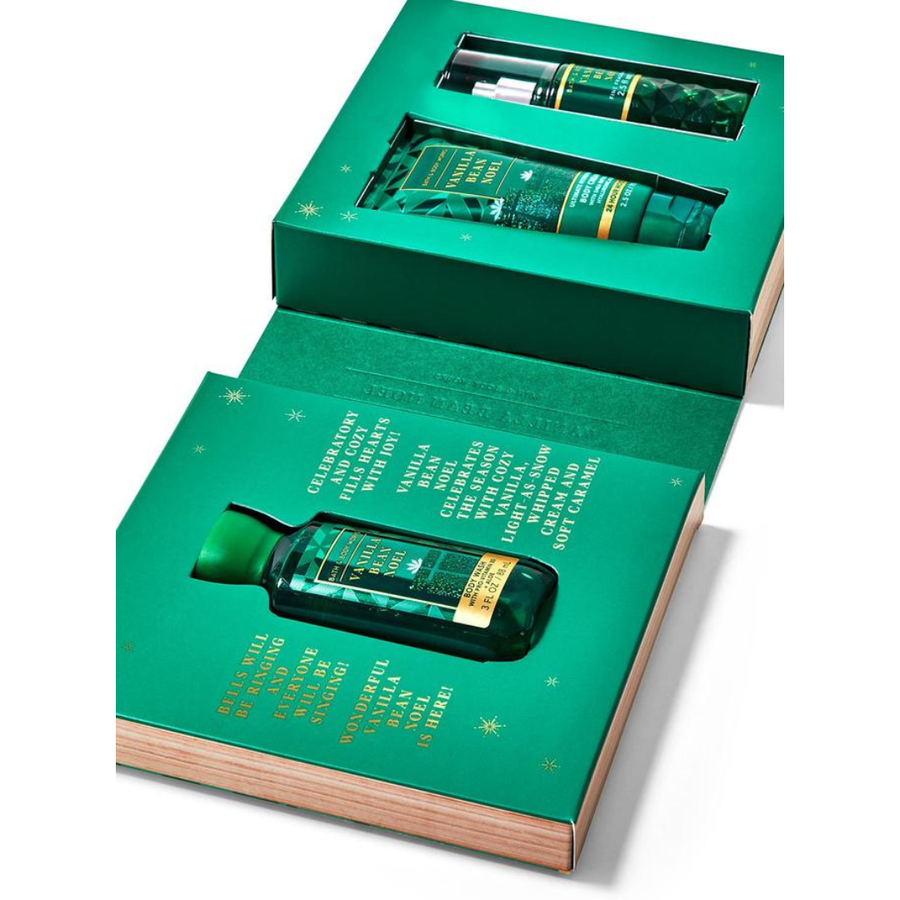 Bath & Body Works Vanilla Bean Noel Mini Gift Box Set – travel-size mist, body wash, and cream in a festive box. Warm vanilla holiday scent. Made in USA.