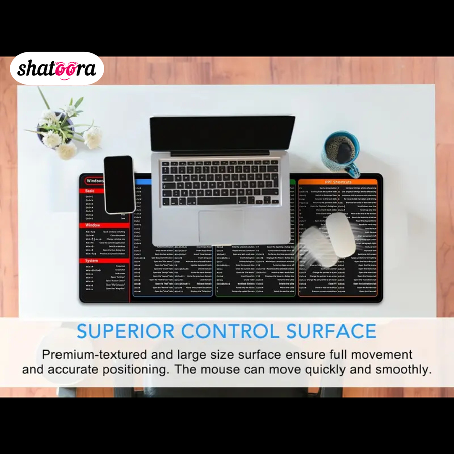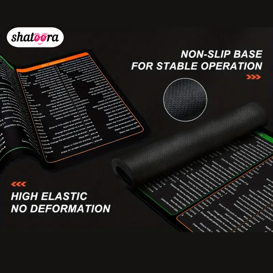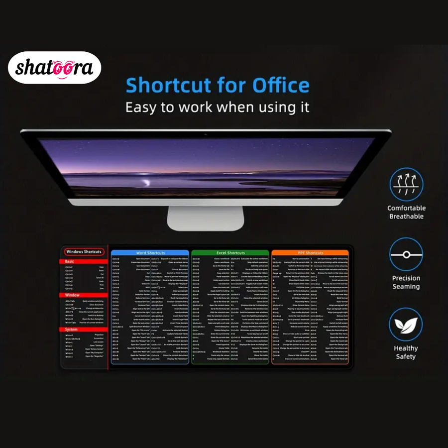 Upgrade your workspace with the Shatoora premium large mouse pad, designed to boost productivity while keeping your desk stylish and organized. With its durable design, smooth washable surface, and color-coded shortcuts, this mat is the ultimate accessory for modern work and study — order now and enjoy comfort and efficiency with Shatoora quality.