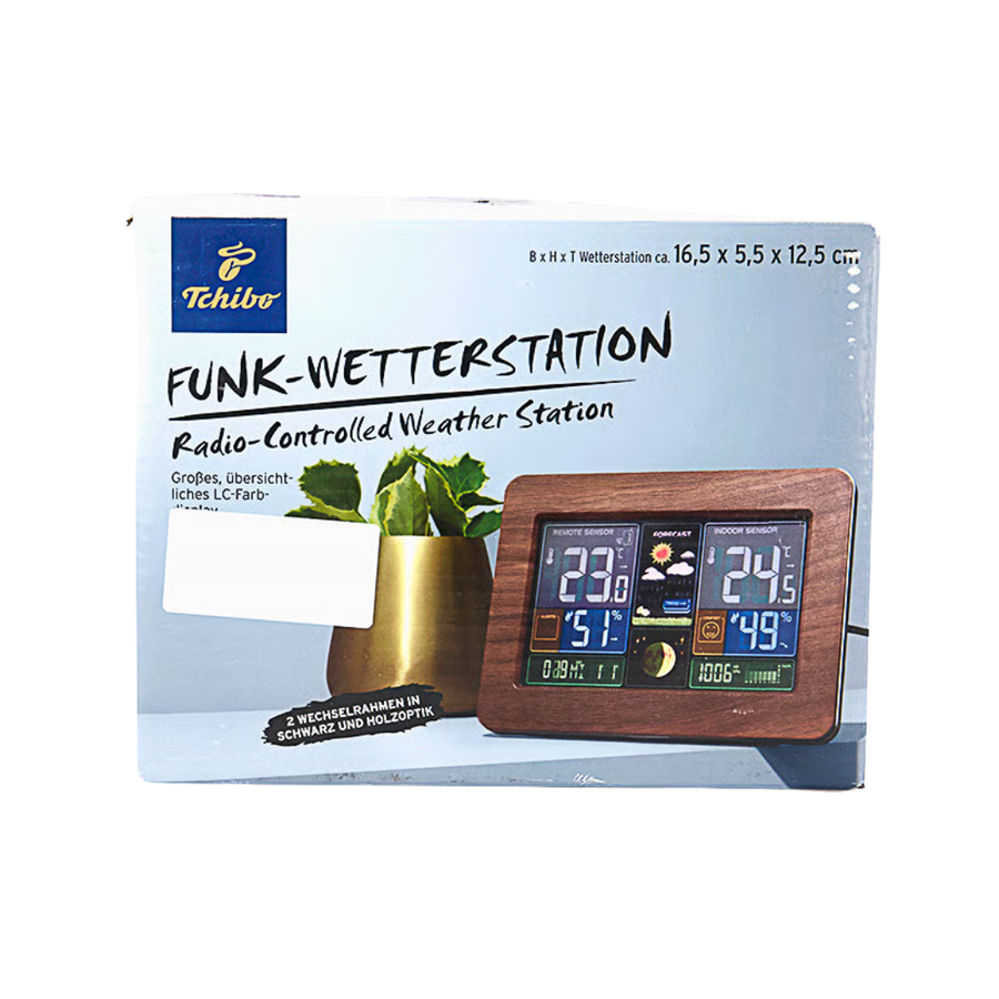 Upgrade your home with intelligent weather insights that combine precision and style. From sunny mornings to rainy evenings — order now and keep your space informed and elegantly styled with the Tchibo Wireless Weather Station.