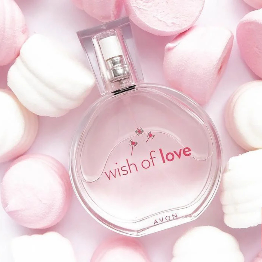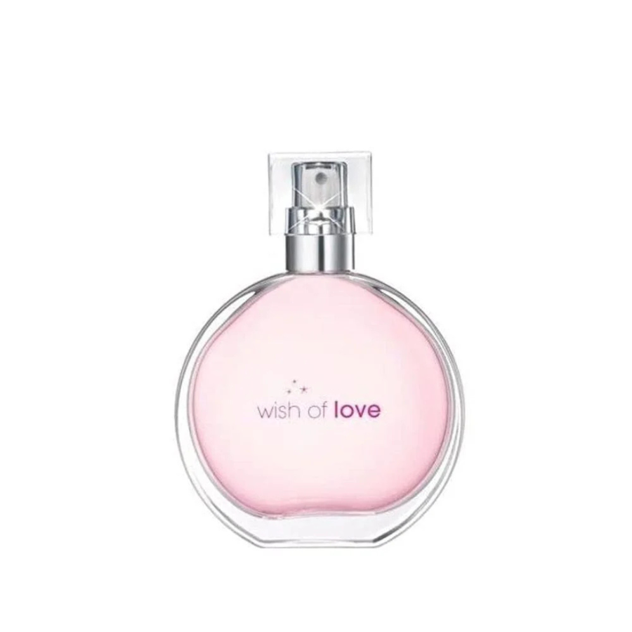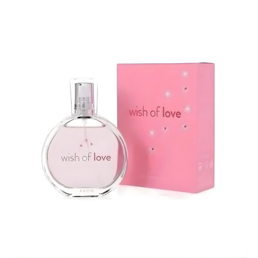 Avon Wish of Love 50 ml Eau de Toilette for women. A fresh and feminine fragrance featuring pear, peony, and musk. Perfect for soft, romantic daily wear.