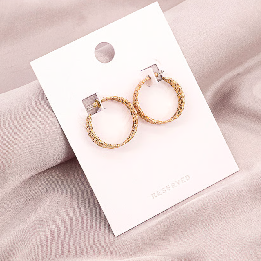 Add a timeless touch of elegance to your look with the Reserved Women 1 Pair Bangle Earrings, Gold. These chic and minimalistic earrings feature a classic bangle-inspired design that perfectly complements any outfit β from casual to formal wear. Crafted from high-quality copper with a radiant gold finish, they offer both style and durability. Lightweight and comfortable, these earrings are ideal for everyday wear or special occasions, adding effortless sophistication to your jewelry collection.