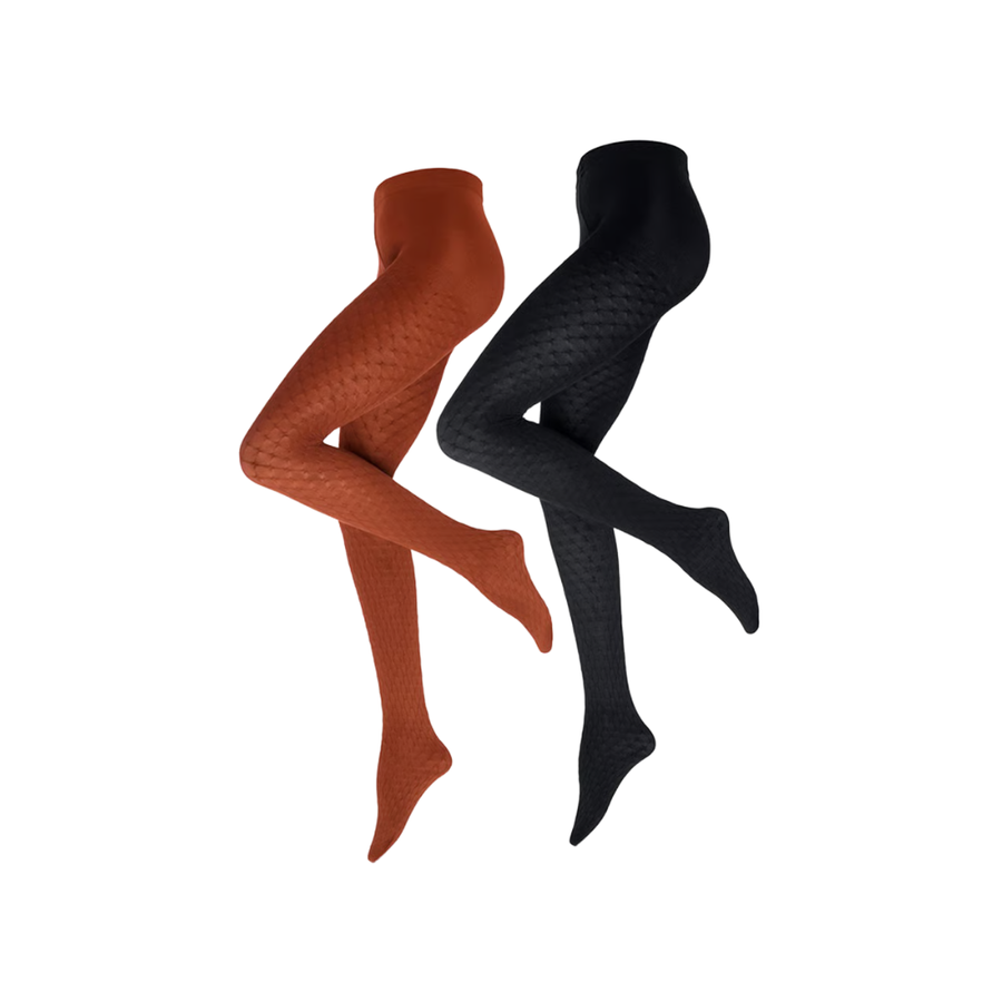 Explore the Tchibo Women 2 Pieces Structured Tights in Rusty Red and Black. Made with a durable polyamide blend, these tights offer a regular fit and pull-on closure. Ideal for casual wear and layering!