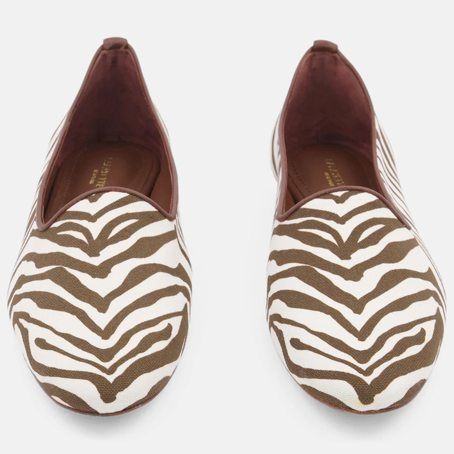 Add a bold statement to your casual style with the Lafayette 148 Women Animal Print Slip On Flats. Designed with a sleek animal print pattern over a white base, these flats blend contemporary design with everyday comfort. Made from durable canvas and set on a sturdy rubber sole, they’re perfect for women seeking a fashionable yet easy-to-wear shoe option.