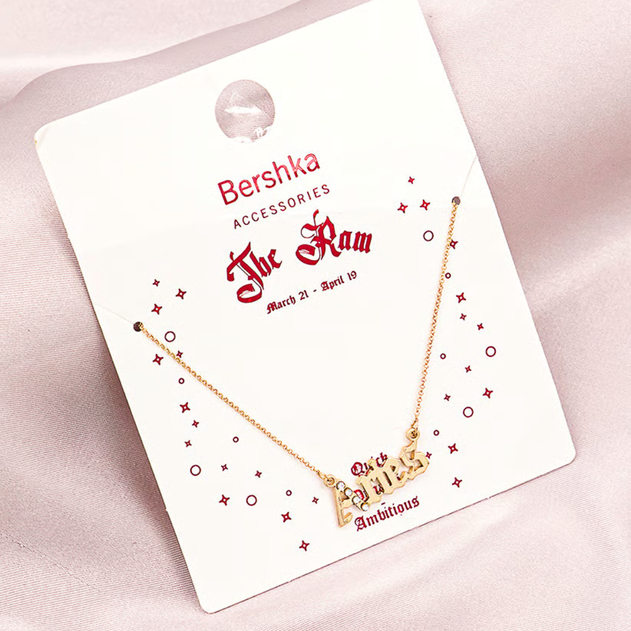 Channel your inner Aries confidence and make a statement with the Bershka Aries Horoscope Necklace. Whether as a personal style piece or a meaningful gift for a loved one, this necklace adds celestial elegance to every moment — order now and let your star sign shine with sophistication and grace.