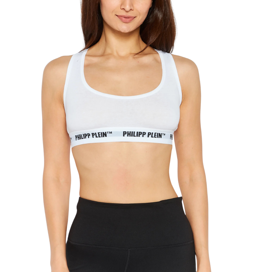 Philipp Plein White Non-Padded Sports Bra for Women – Sportswear fit with brand logo, no underwire, and breathable cotton blend.