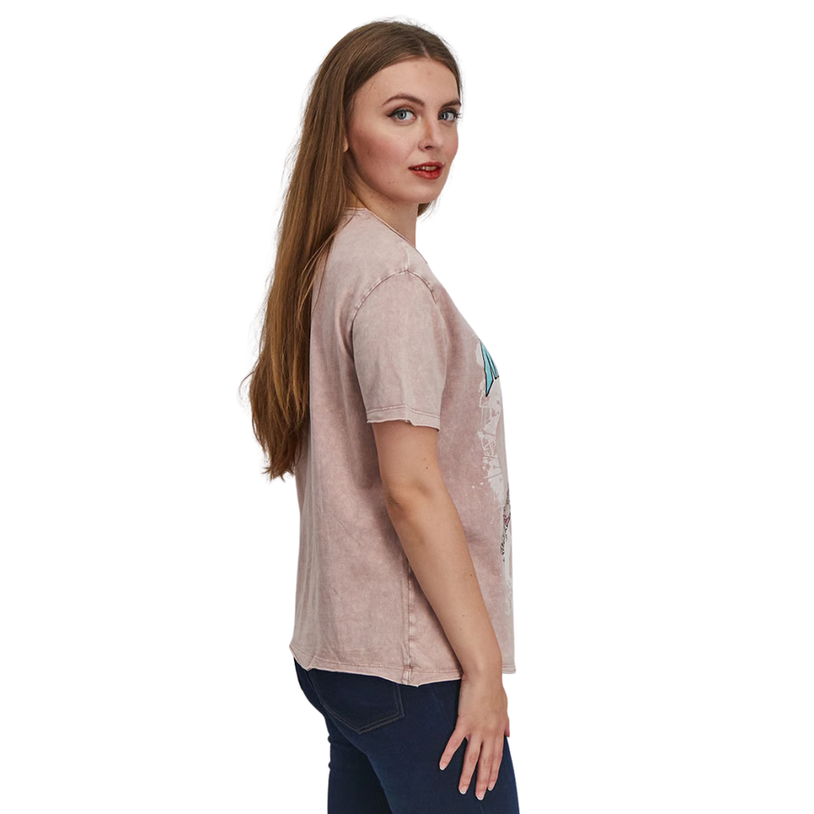 Reserved women’s graphic T-shirt in blush pink with a crew neck and short sleeves. Made of 100% cotton for breathable comfort and casual everyday style.