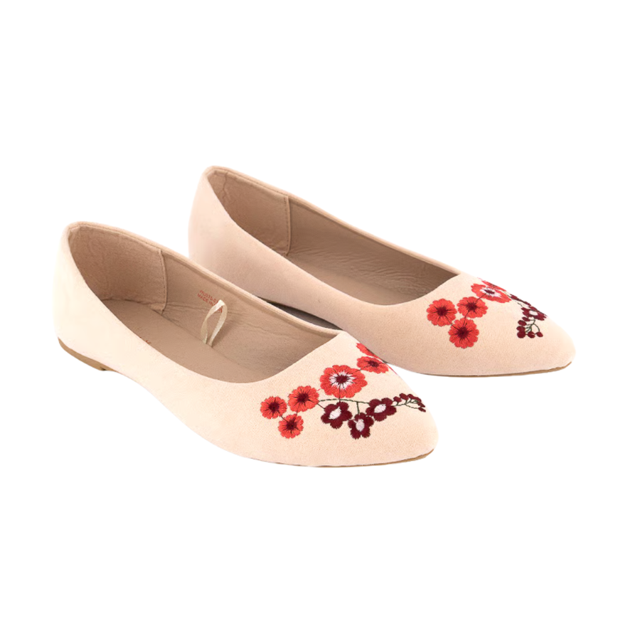 Step into effortless elegance with the Sinsay Women Embroidered Floral Flat Shoes in light peach. Designed with a charming floral embroidery, these flats combine style, comfort, and versatility, making them perfect for daily wear. Crafted from soft suede with a synthetic sole, these shoes feature a slip-on closure and a closed-toe design that ensures a secure and comfortable fit. Whether for casual outings, weekend get-togethers, or relaxed office days, these flats are a stylish must-have in your wardrobe.