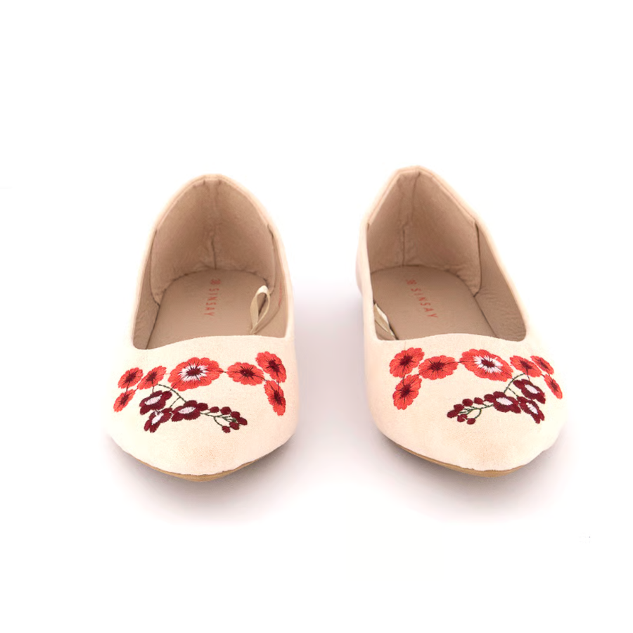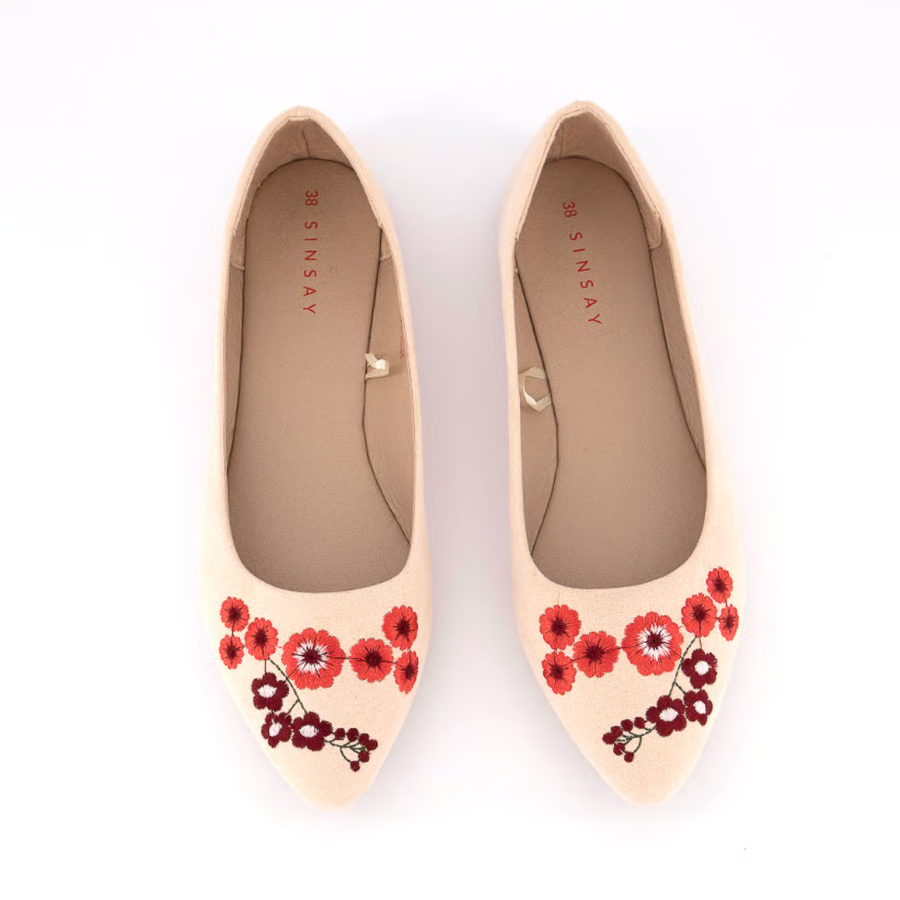 Elevate your everyday style with these Sinsay embroidered floral flats that blend fashion with comfort. Their versatile design makes them easy to pair with jeans, skirts, or dresses, ensuring you look stylish without compromising on comfort. Add a touch of elegance to your steps today—order now and enjoy the perfect balance of charm and ease in your footwear collection.