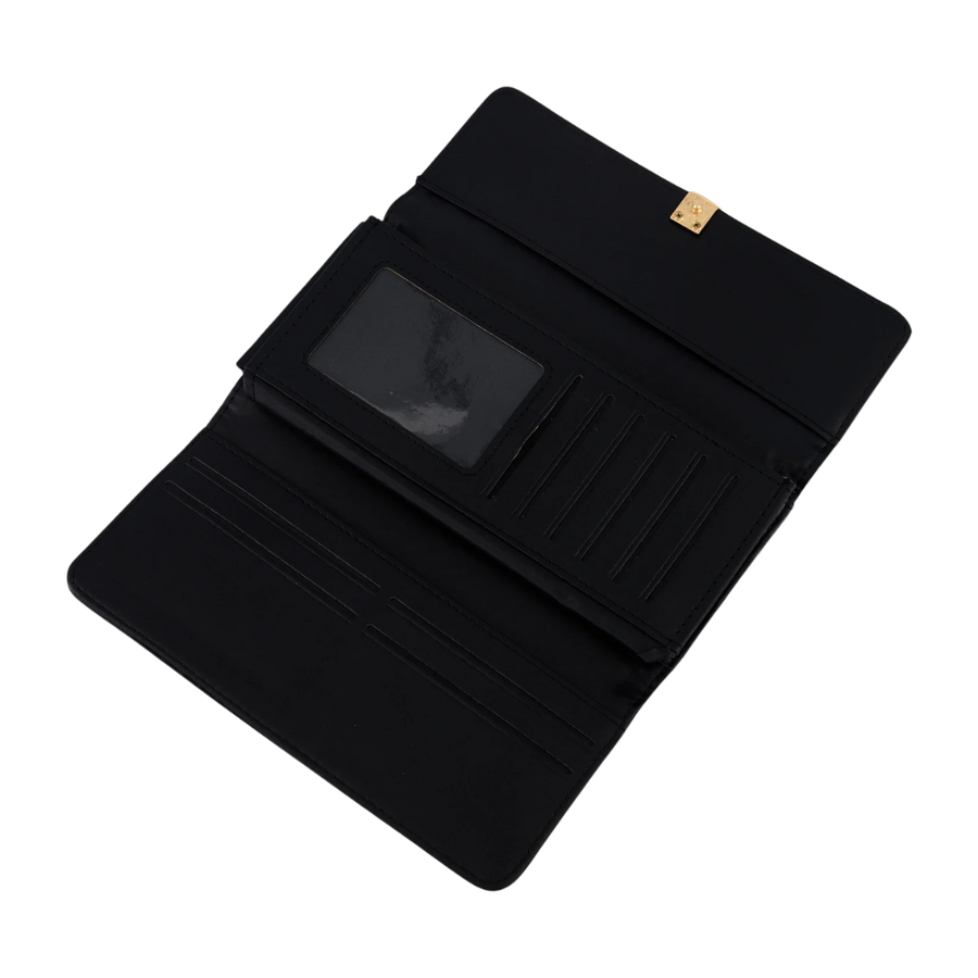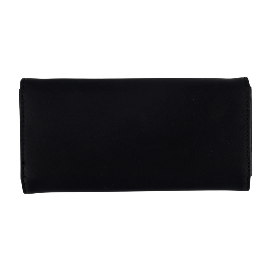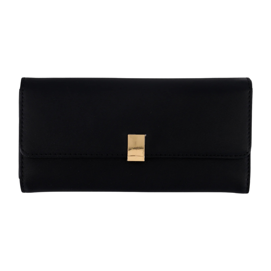 Caracol Women Plain Leather Wallet in Black – 10x19x1 cm. Premium leather, snap button closure, slim and stylish. Ideal for daily use or gifting.