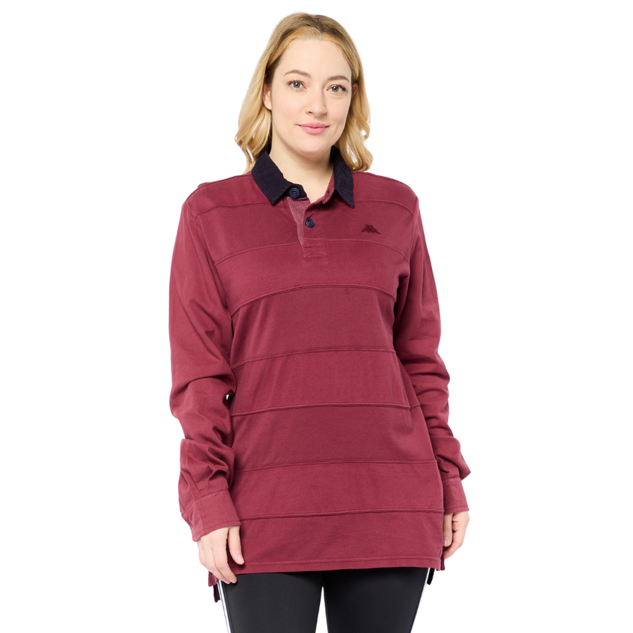 Robe Di Kappa women’s textured full sleeves polo shirt in maroon, made from 100% cotton with a regular fit and spread collar.